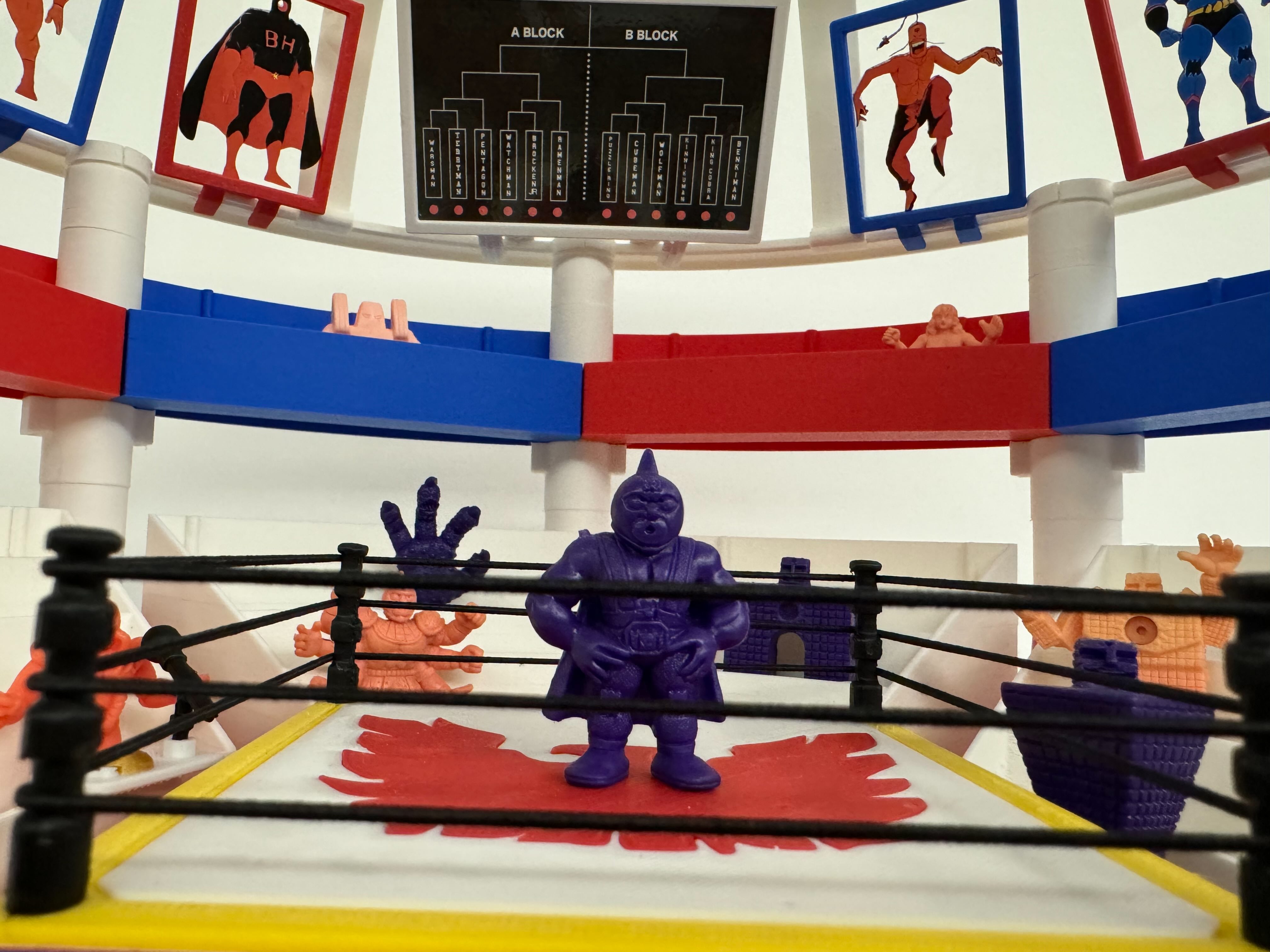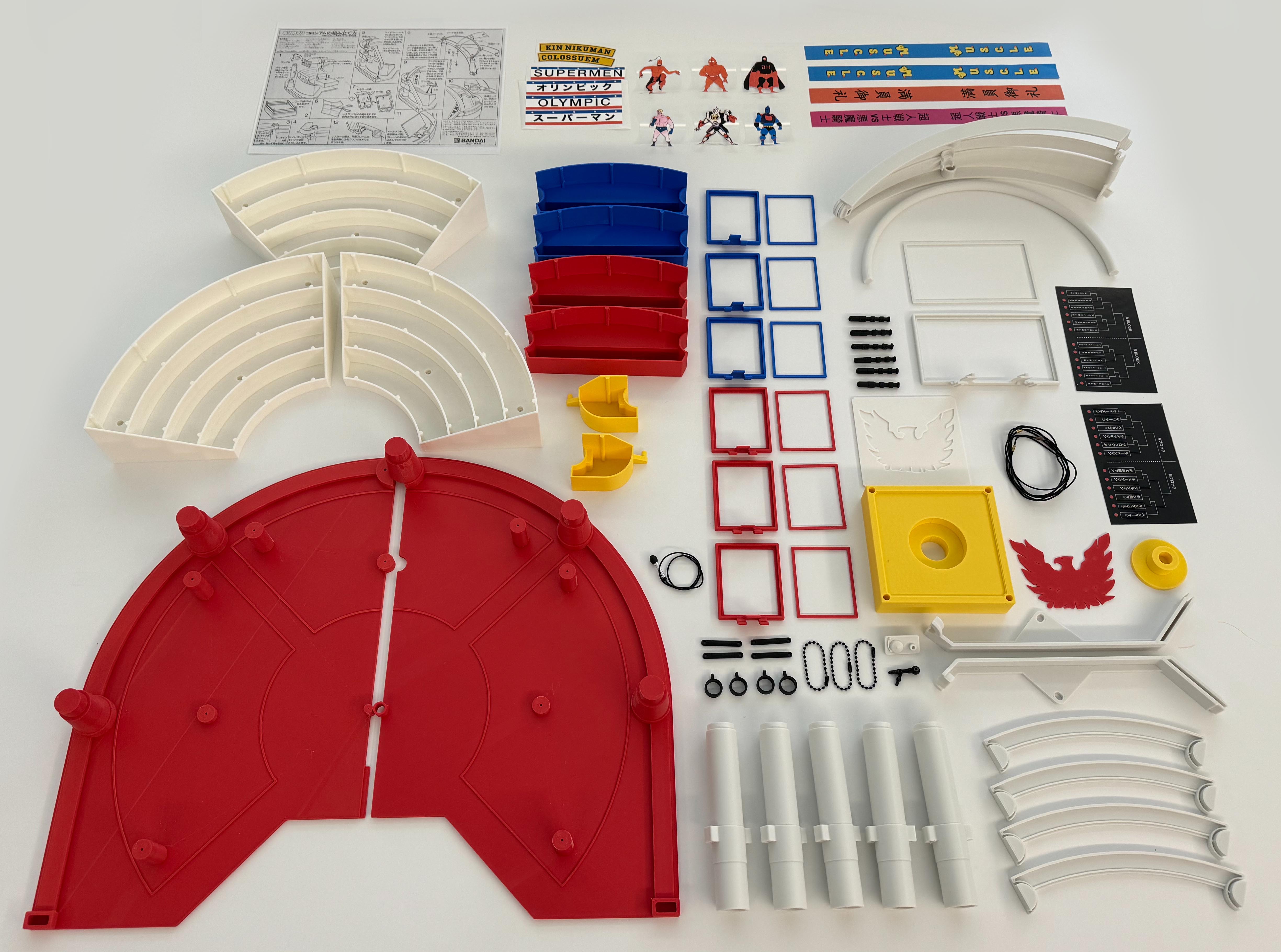 This is a 1:1 reproduction of the Kinniku Colossuem (or as close as I could make it). This includes 3D printed plastic parts, sticker sheets, multiple banner options and inserts for 6 portrait frames and the scoreboard. No figures are included. Some assembly is required (These kits are made to order, so they will take two to three weeks to produce before shipping; shipping time is approx 5 days)